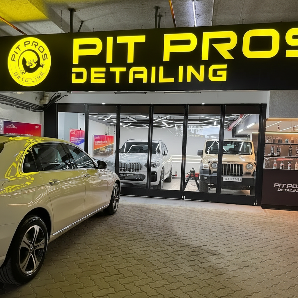 PitPros Car Spa is a professional car wash and detailing studio in Thrissur, established to deliver world-class car care services with attention to detail and customer satisfaction. Conveniently located inside Sobha City Mall, Puzhakkal, we specialize in foam wash, interior detailing, ceramic coating, and PPF installation.
